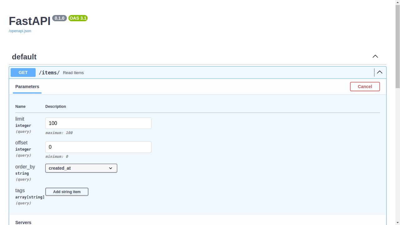 /docs 경로의 API 문서에서 매개변수를 확인할 수 있습니다.